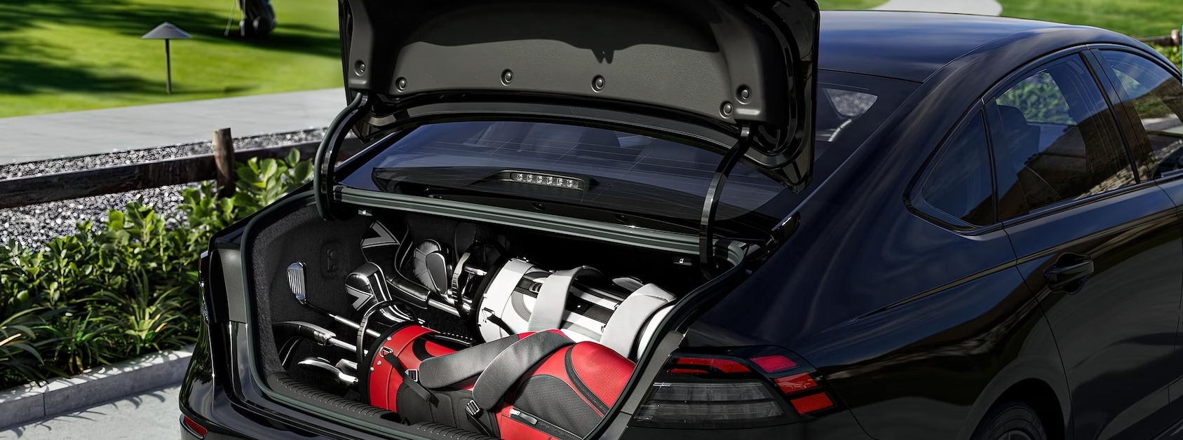 Inside these new Honda cars, you'll find only the finest materials and surfaces, along with plenty of convenient small-item storage areas. Moreover, the 2024 Honda Accord Hybrid model's trunk measures 16.7 cubic feet, which is large enough to easily fit a golf bag. This sedan's well-appointed interior is also home to a range of high-end standard features, including infotainment assets like wireless Apple CarPlay® and Android Auto™, and a 12.3-inch center touchscreen.