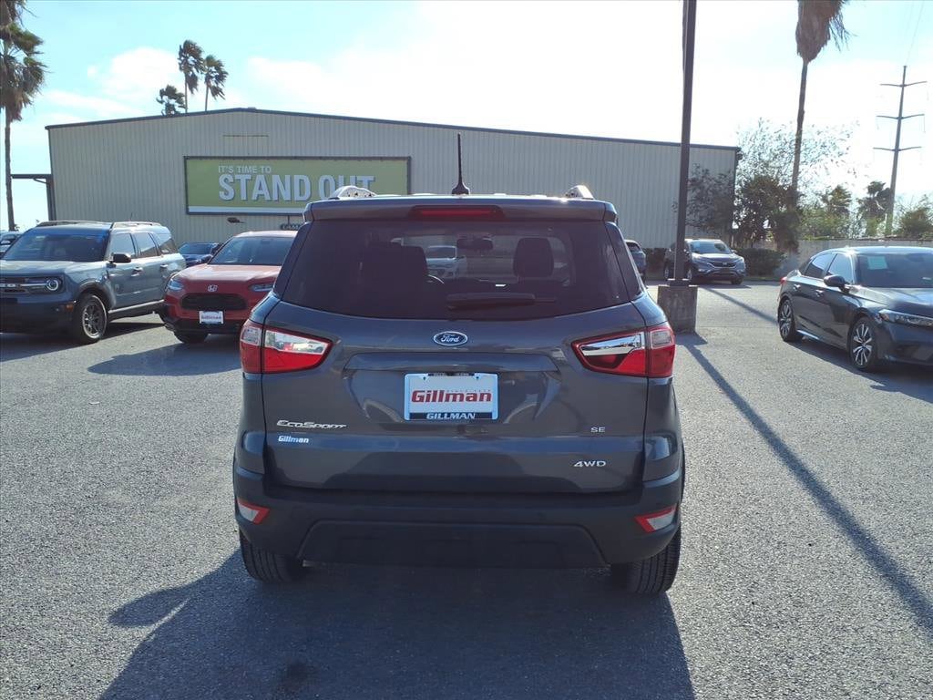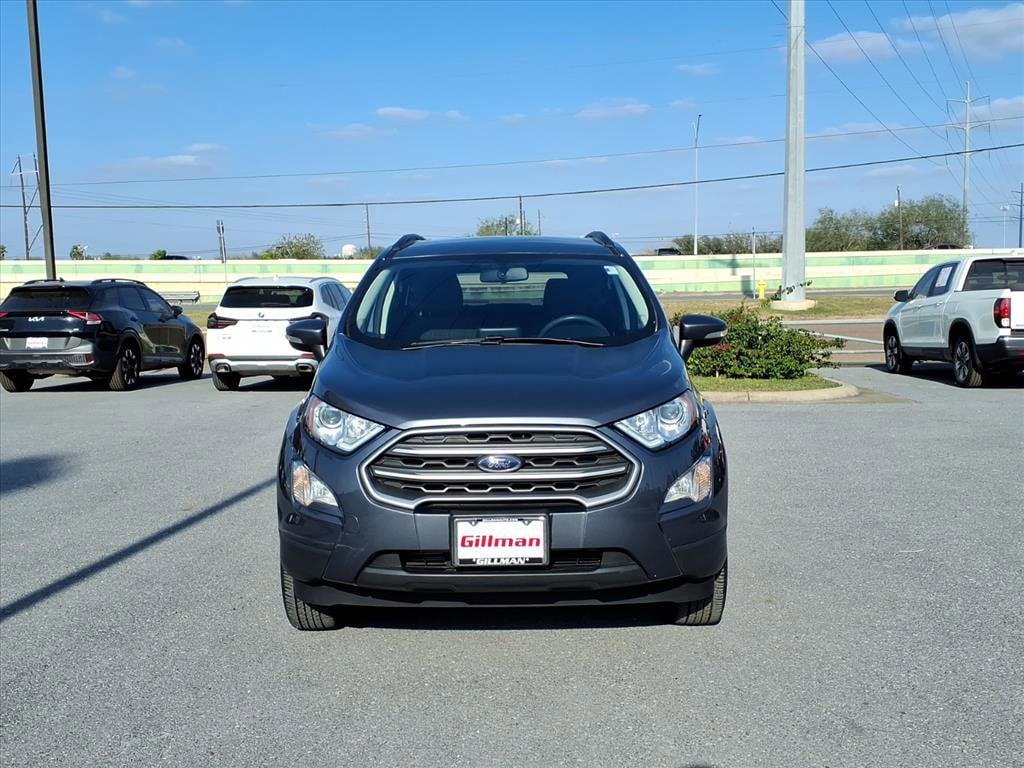 Gillman's Lifetime Engine Warranty lasts as long as you own your vehicle - free with the Gillman Pre-Owned Promise. If the vehicle isn't right for you, return it in purchase condition within 2 days or 200 miles as part of our Happy-Driving Guarantee. Drive in style and confidence with this Gray 2022 Ford EcoSport SE AWD Crossover! With all-wheel drive and a peppy 2.0L I4 engine paired to a 6-speed shiftable automatic, this EcoSport is ready for any weather. Enjoy the convenience of FordPass Connect with smart device app compatibility, Apple CarPlay and Android Auto on an 8-inch touchscreen, and a SYNC infotainment system with voice commands. Stay comfortable with heated front seats, automatic climate control, and a power glass moonroof. Safety comes standard with rear parking sensors, a rearview camera, blind spot monitoring, and a host of airbags. Additional features include SiriusXM, proximity entry with push-button start, black roof rails, and split-folding rear seats for flexible cargo space. Well-maintained and equipped with the SE Convenience Package, this EcoSport is a smart choice for drivers seeking versatility, technology, and safety. All vehicles subject to prior sale. We are not responsible for typographical errors and may change information without notice. Photos may not depict the actual vehicle. Tax, title, and license fees not included. Dealer Discount available to all buyers.Vehicles purchased from Gillman Automotive Group include a Bring It Back Guarantee: return the vehicle in purchase condition within two days or 200 miles. New current-model-year vehicles and qualifying pre-owned vehicles (under 90,000 miles and less than 7 years old) are eligible. Guarantee is non-transferable and has no cash value. Lifetime Warranty available on select pre-owned vehicles. See dealer for details; restrictions may apply.