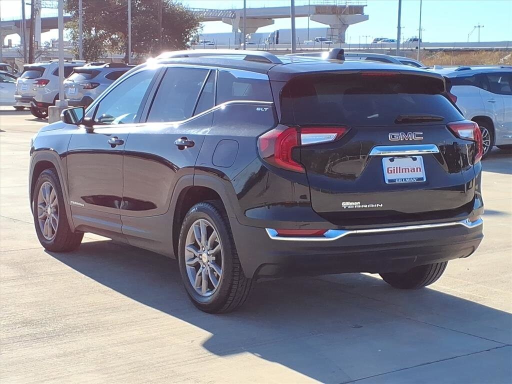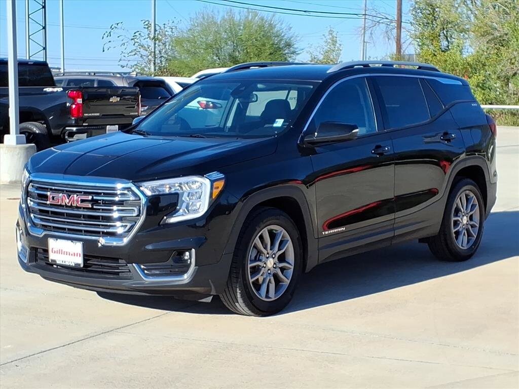 Gillman's Lifetime Engine Warranty lasts as long as you own your vehicle - free with the Gillman Pre-Owned Promise. If the vehicle isn't right for you, return it in purchase condition within 2 days or 200 miles as part of our Happy-Driving Guarantee. Discover the style and versatility of the 2023 GMC Terrain SLT in sleek black. This SUV delivers a premium driving experience with its 1.5L Turbo I4 engine and smooth 9-speed shiftable automatic transmission. Enjoy advanced safety with front automatic emergency braking, pedestrian detection, and lane keeping assist. The Terrain SLT features a spacious, leather-trimmed interior with heated front seats, dual-zone automatic climate control, and a heated steering wheel for comfort in any season. Stay connected and entertained with an 8-inch GMC Infotainment System, wireless Apple CarPlay and Android Auto, Amazon Alexa compatibility, SiriusXM, and a built-in Wi-Fi hotspot. Convenience features like a power liftgate, remote engine start, and proximity entry make every drive easier. Aluminum alloy wheels, LED headlights, and chrome roof rails complete the sophisticated look. Test drive this well-equipped SUV today and experience the best of GMC innovation. All vehicles subject to prior sale. We are not responsible for typographical errors and may change information without notice. Photos may not depict the actual vehicle. Tax, title, and license fees not included. Dealer Discount available to all buyers.Vehicles purchased from Gillman Automotive Group include a Bring It Back Guarantee: return the vehicle in purchase condition within two days or 200 miles. New current-model-year vehicles and qualifying pre-owned vehicles (under 90,000 miles and less than 7 years old) are eligible. Guarantee is non-transferable and has no cash value. Lifetime Warranty available on select pre-owned vehicles. See dealer for details; restrictions may apply.