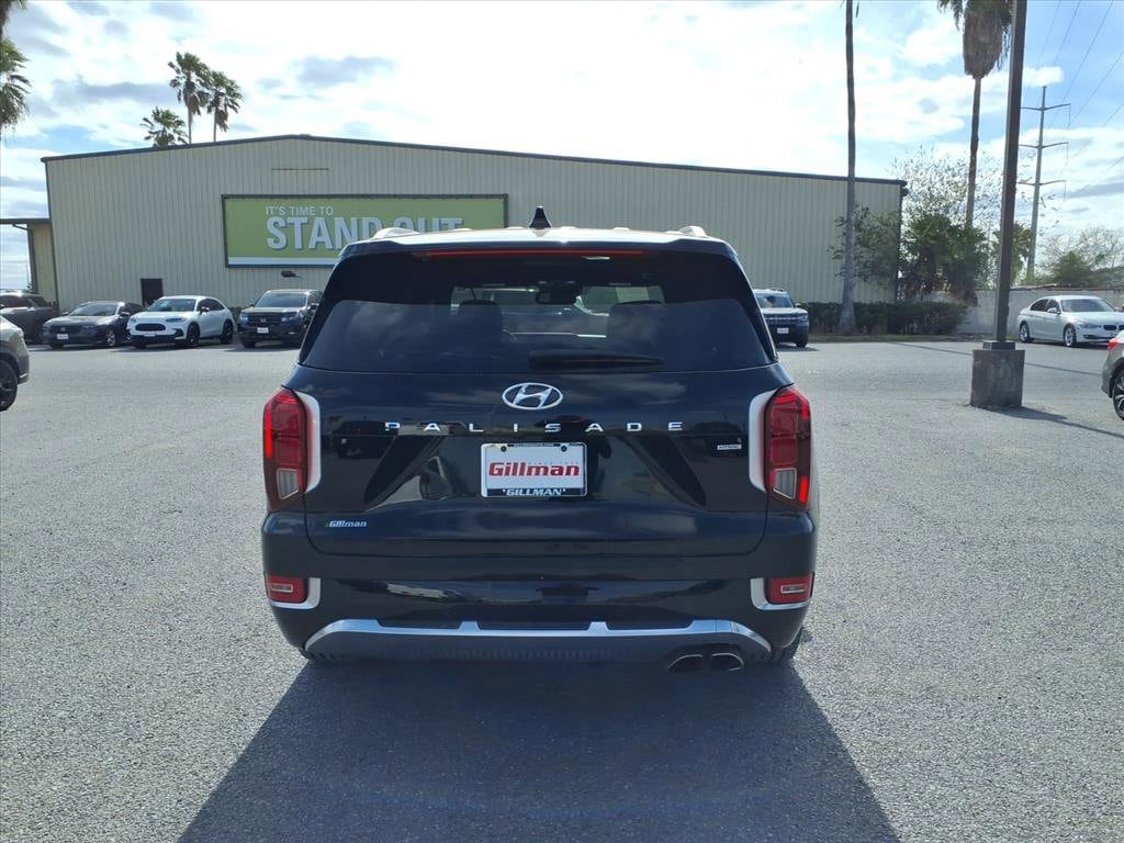 Gillman's Lifetime Engine Warranty lasts as long as you own your vehicle - free with the Gillman Pre-Owned Promise. If the vehicle isn't right for you, return it in purchase condition within 2 days or 200 miles as part of our Happy-Driving Guarantee. Experience luxury and capability with this Black 2021 Hyundai PALISADE AWD Calligraphy 4dr SUV. Designed to impress, it features premium leather upholstery, a dual-pane moonroof, and advanced safety including Front Automatic Emergency Braking, Lane Keeping Assist, Pedestrian Detection, and a Surround View Camera System. Stay connected with a 10.25-inch touchscreen, Apple CarPlay, Android Auto, Harman/Kardon premium audio, and Blue Link app compatibility for remote start and vehicle location. Comfort abounds with heated and ventilated front and rear seats, height-adjustable power seating, and tri-zone climate control. Convenience features like a power liftgate, hands-free trunk, remote start, adaptive cruise control, and smart device app functions make every drive effortless. With all-wheel drive and a 3.8L V6 engine, this Palisade blends style, space, and performance for your family's next adventure. Visit us today for a test drive and discover why the Calligraphy trim is the pinnacle of Hyundai SUV luxury. All vehicles subject to prior sale. We are not responsible for typographical errors and may change information without notice. Photos may not depict the actual vehicle. Tax, title, and license fees not included. Dealer Discount available to all buyers.Vehicles purchased from Gillman Automotive Group include a Bring It Back Guarantee: return the vehicle in purchase condition within two days or 200 miles. New current-model-year vehicles and qualifying pre-owned vehicles (under 90,000 miles and less than 7 years old) are eligible. Guarantee is non-transferable and has no cash value. Lifetime Warranty available on select pre-owned vehicles. See dealer for details; restrictions may apply.