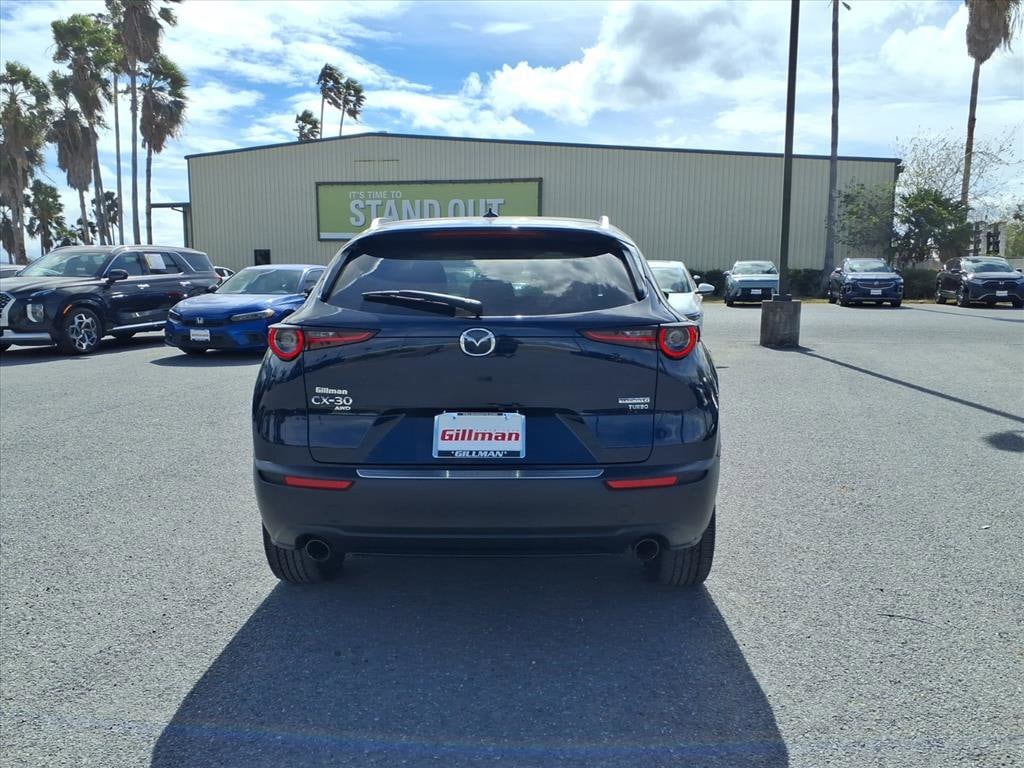 Gillman's Lifetime Engine Warranty lasts as long as you own your vehicle - free with the Gillman Pre-Owned Promise. If the vehicle isn't right for you, return it in purchase condition within 2 days or 200 miles as part of our Happy-Driving Guarantee. Experience turbocharged performance and advanced tech in the 2024 Mazda CX-30 AWD 2.5 Turbo Premium. This stylish SUV features a SKYACTIV-G 2.5L Turbo engine and on-demand all-wheel drive for confidence in any weather. Enjoy luxurious leather-trimmed upholstery, heated front seats and steering wheel, a Bose premium sound system, and a panoramic power moonroof. Stay connected with a 10.25-inch MAZDA CONNECT touchscreen, wireless Apple CarPlay and Android Auto, front wireless charging, and a Wi-Fi hotspot. Safety is paramount with adaptive cruise control, front and rear automatic emergency braking, pedestrian detection, blind spot monitoring, rear cross traffic alert, lane keeping assist, and a head-up display. Convenience features include power liftgate, memory driver's seat, dual-zone automatic climate control, and customizable instrument cluster. This CX-30 blends dynamic driving, comfort, and cutting-edge technology into one impressive package. Visit us today to test drive your next SUV! All vehicles subject to prior sale. We are not responsible for typographical errors and may change information without notice. Photos may not depict the actual vehicle. Tax, title, and license fees not included. Dealer Discount available to all buyers.Vehicles purchased from Gillman Automotive Group include a Bring It Back Guarantee: return the vehicle in purchase condition within two days or 200 miles. New current-model-year vehicles and qualifying pre-owned vehicles (under 90,000 miles and less than 7 years old) are eligible. Guarantee is non-transferable and has no cash value. Lifetime Warranty available on select pre-owned vehicles. See dealer for details; restrictions may apply.